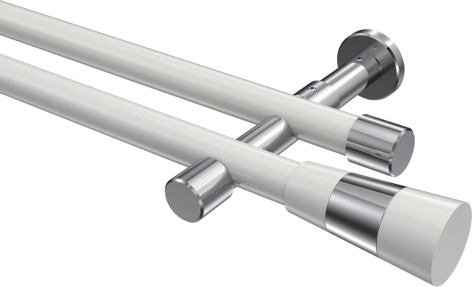 Gardinenstangen aus Metall in 20 mm Ø, 2-läufig, Modell PRESTIGE - Tanara Weiß / Chrom (ohne Ringe)