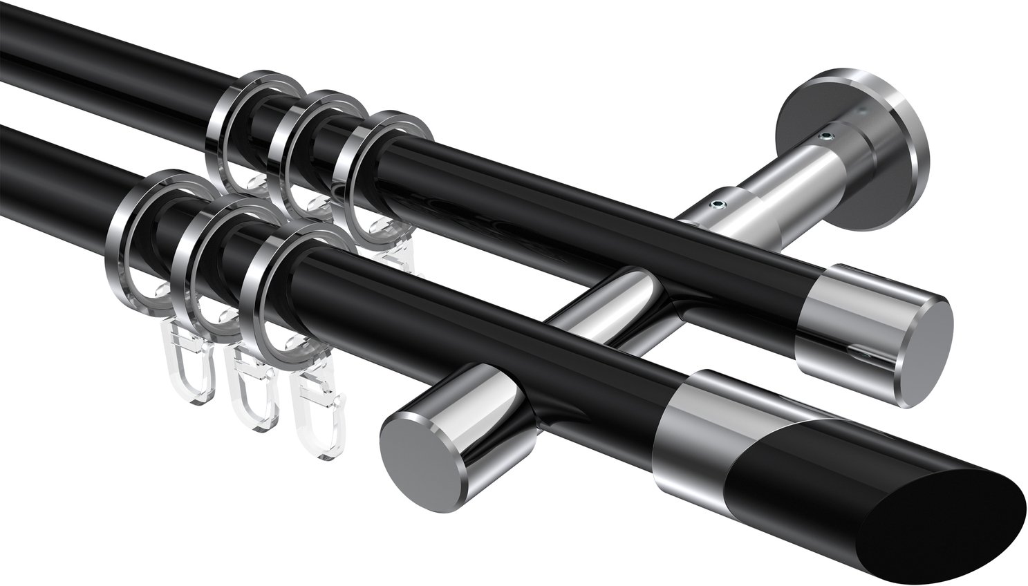 Gardinenstangen aus Metall in 20 mm Ø, 2-läufig, Modell PRESTIGE - Verano Schwarz / Chrom