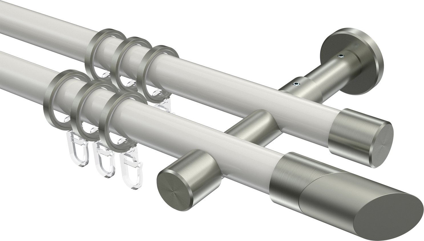 Informationen zu Gardinenstange Metall 20 mm Ø 2-läufig PRESTIGE - Verano Weiß / Edelstahl-Optik: