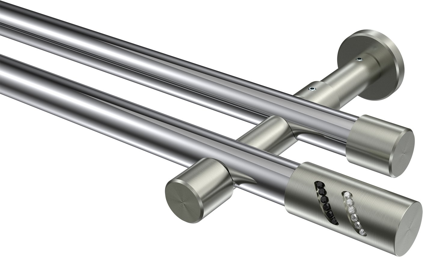 Informationen zu Gardinenstange Metall 20 mm Ø 2-läufig PRESTIGE - Zoena Chrom / Edelstahl-Optik (ohne Ringe):