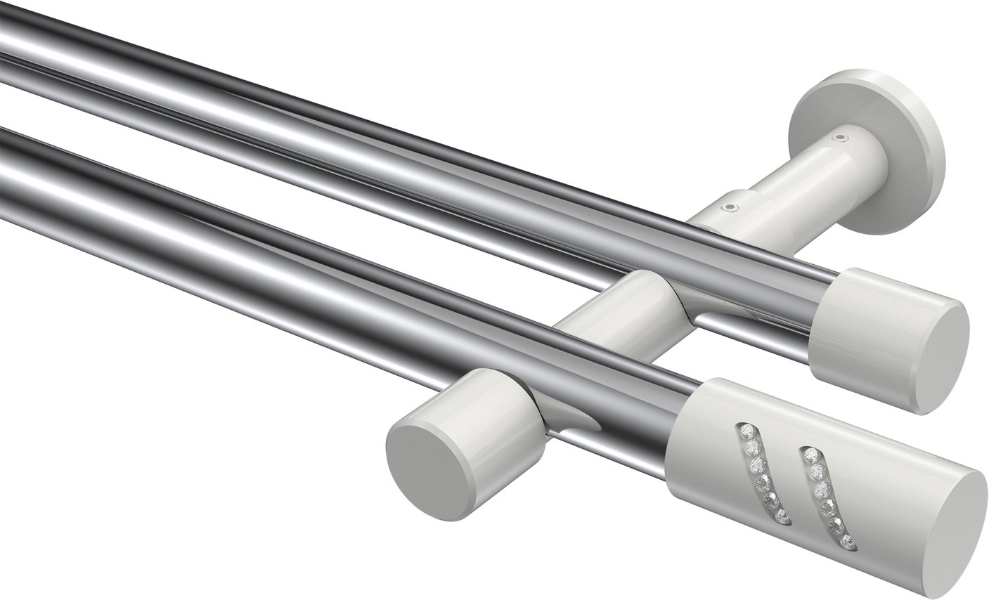 Informationen zu Gardinenstange Metall 20 mm Ø 2-läufig PRESTIGE - Zoena Chrom / Weiß (ohne Ringe):