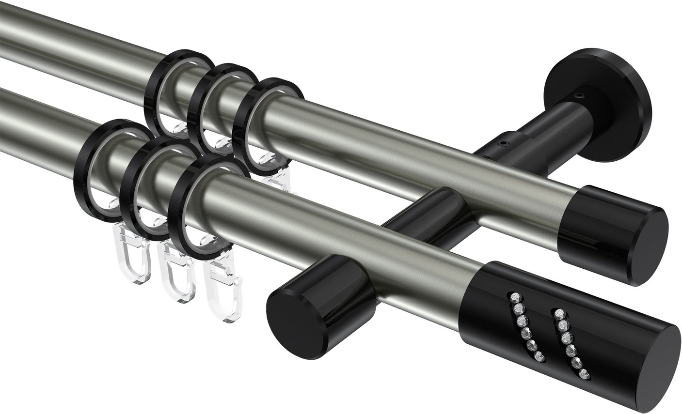 Gardinenstangen aus Metall in 20 mm Ø, 2-läufig, Modell PRESTIGE - Zoena Edelstahl-Optik / Schwarz