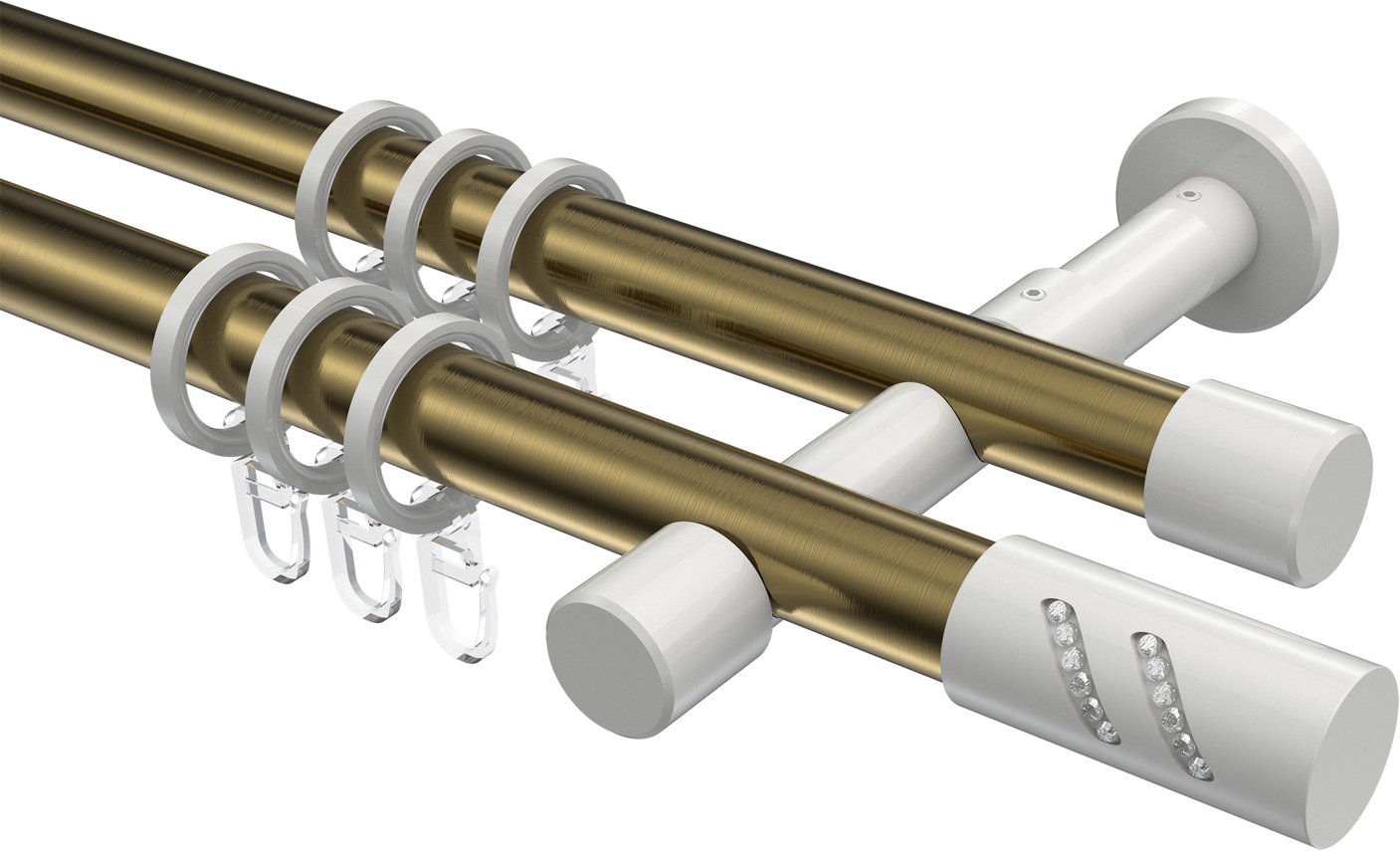 Informationen zu Gardinenstange Metall 20 mm Ø 2-läufig PRESTIGE - Zoena Messing Antik / Weiß:
