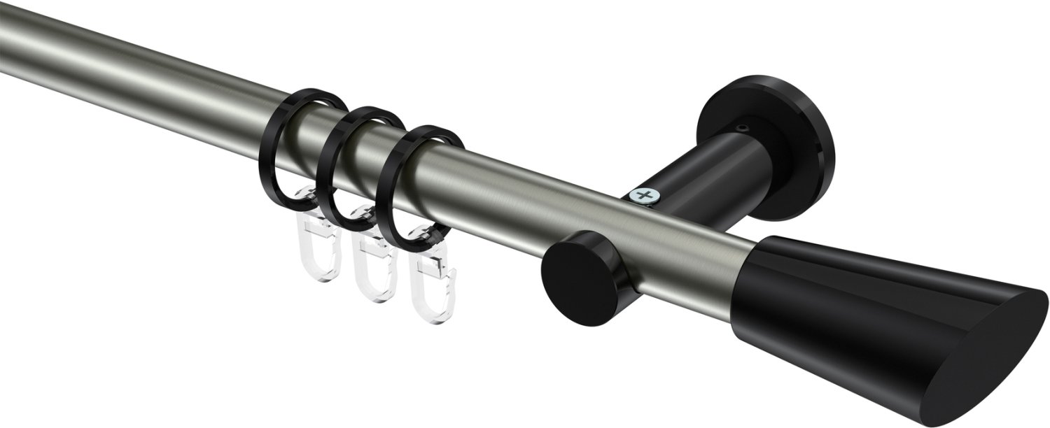 Gardinenstangen aus Metall in 20 mm Ø, 1-läufig, Modell PLATON - Bento Edelstahl-Optik / Schwarz
