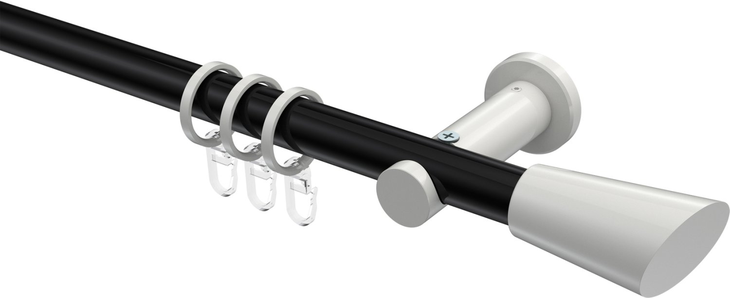 Gardinenstangen aus Metall in 20 mm Ø, 1-läufig, Modell PLATON - Bento Schwarz / Weiß