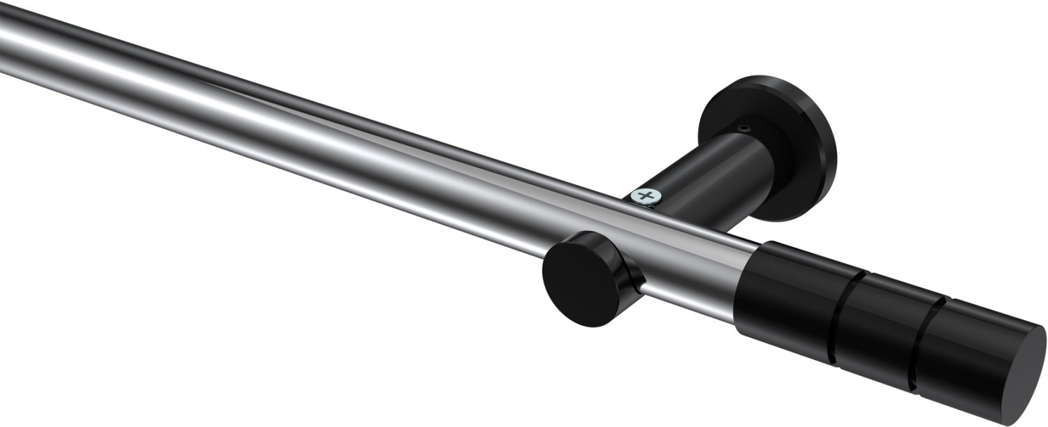 Gardinenstangen aus Metall in 20 mm Ø, 1-läufig, Modell PLATON - Elanto Chrom / Schwarz (ohne Ringe)