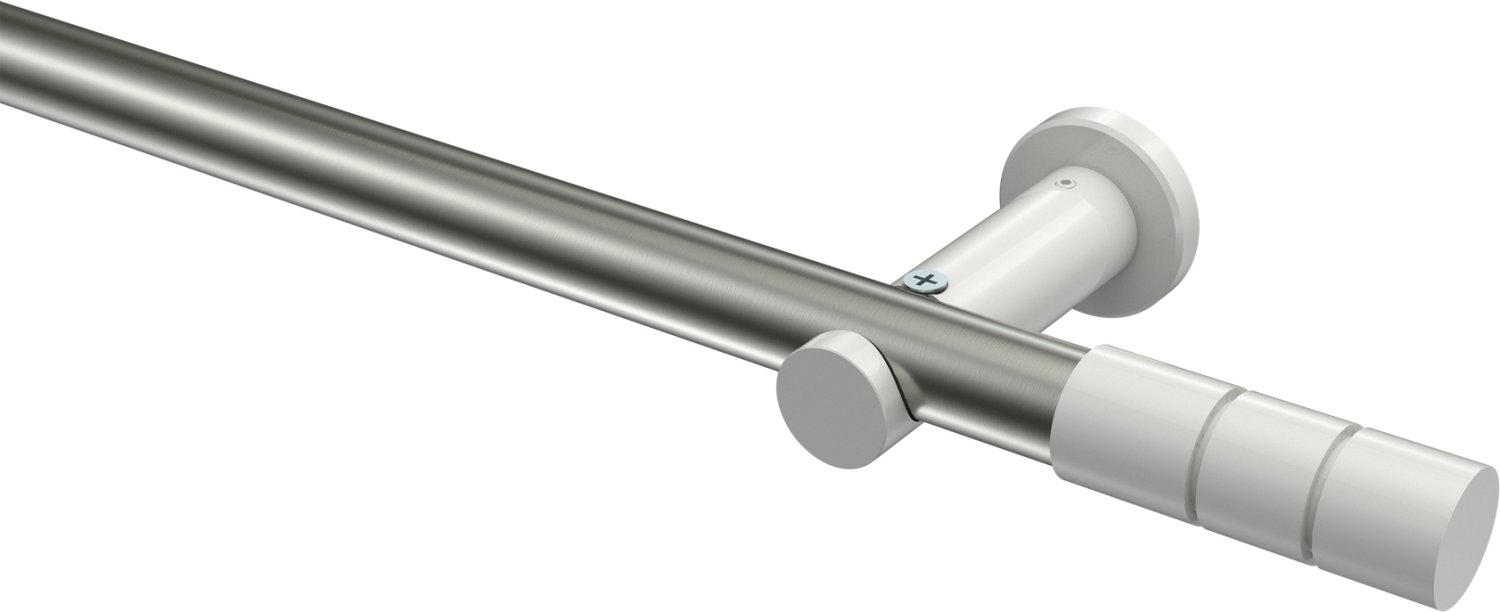 Gardinenstangen aus Metall in 20 mm Ø, 1-läufig, Modell PLATON - Elanto Edelstahl-Optik / Weiß (ohne Ringe)