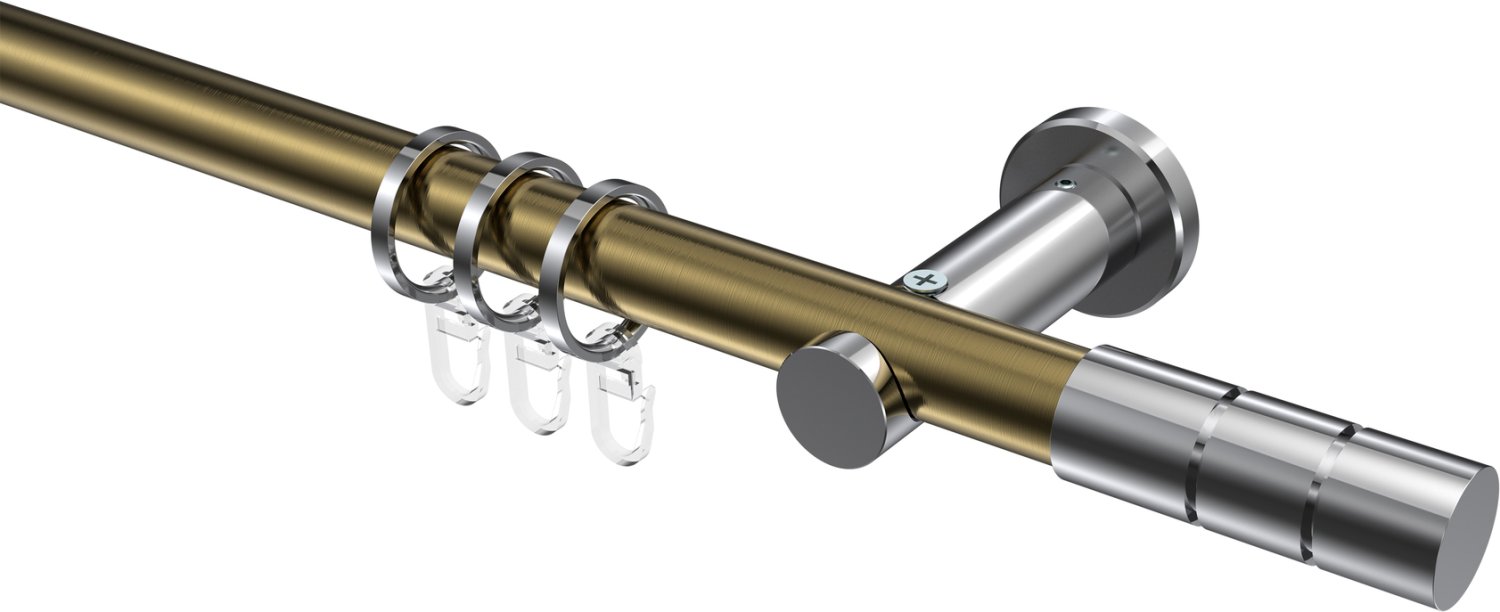 Gardinenstangen aus Metall in 20 mm Ø, 1-läufig, Modell PLATON - Elanto Messing Antik / Chrom
