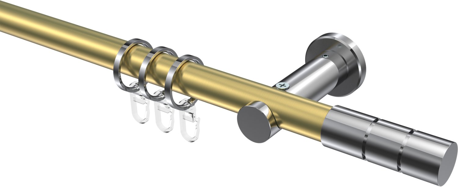 Gardinenstangen aus Metall in 20 mm Ø, 1-läufig, Modell PLATON - Elanto Messing-Optik / Chrom