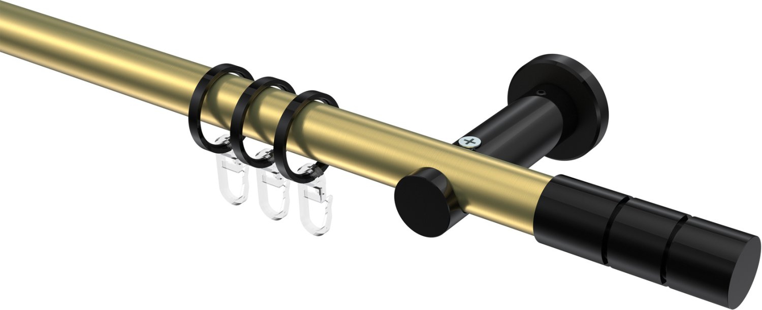 Gardinenstangen aus Metall in 20 mm Ø, 1-läufig, Modell PLATON - Elanto Messing-Optik / Schwarz