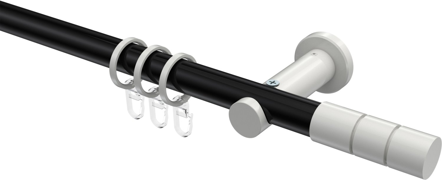 Gardinenstangen aus Metall in 20 mm Ø, 1-läufig, Modell PLATON - Elanto Schwarz / Weiß