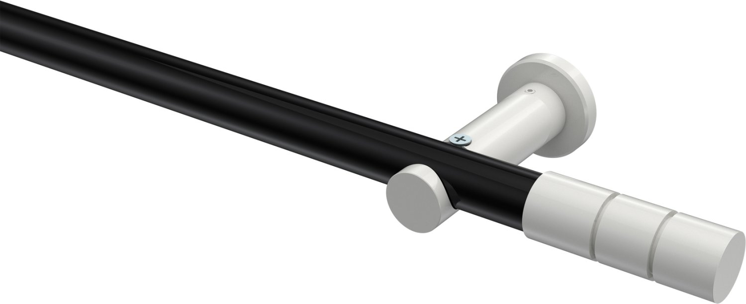 Gardinenstangen aus Metall in 20 mm Ø, 1-läufig, Modell PLATON - Elanto Schwarz / Weiß (ohne Ringe)