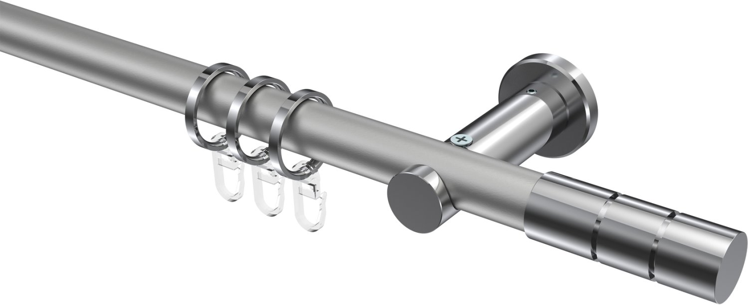 Gardinenstangen aus Metall in 20 mm Ø, 1-läufig, Modell PLATON - Elanto Silbergrau / Chrom