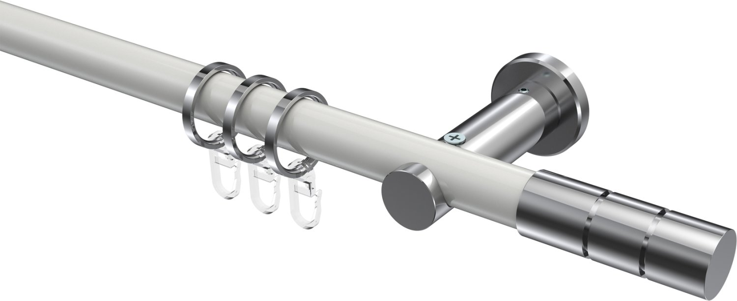 Gardinenstangen aus Metall in 20 mm Ø, 1-läufig, Modell PLATON - Elanto Weiß / Chrom