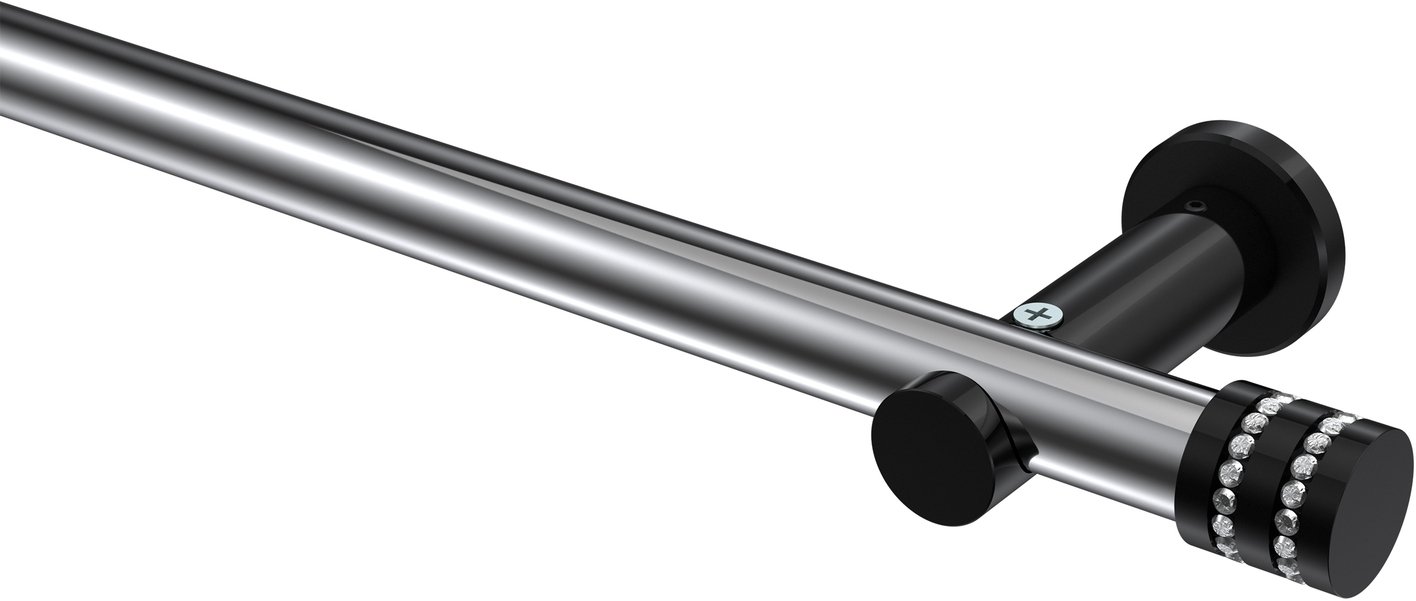 Gardinenstangen aus Metall in 20 mm Ø, 1-läufig, Modell PLATON - Estana Chrom / Schwarz (ohne Ringe)