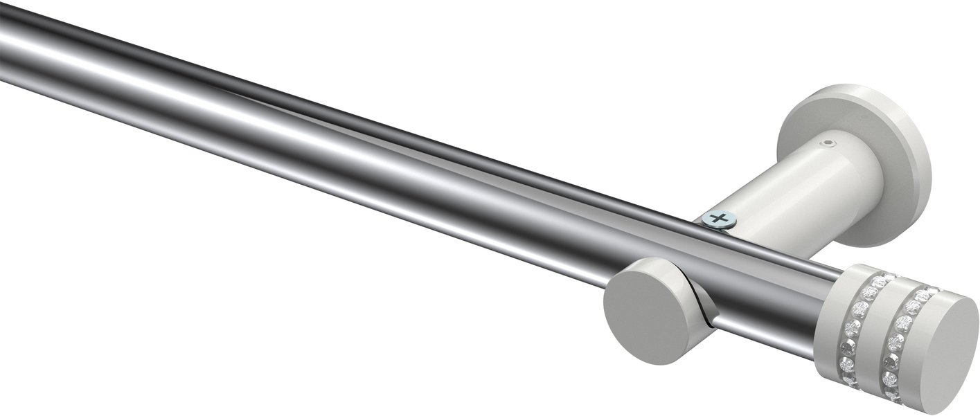 Gardinenstangen aus Metall in 20 mm Ø, 1-läufig, Modell PLATON - Estana Chrom / Weiß (ohne Ringe)