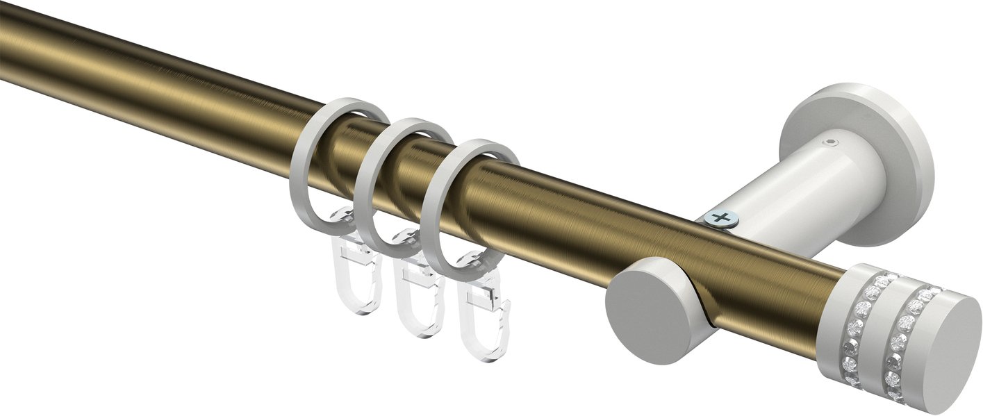 Gardinenstangen aus Metall in 20 mm Ø, 1-läufig, Modell PLATON - Estana Messing Antik / Weiß
