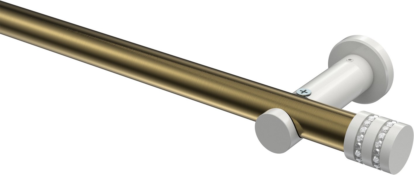 Gardinenstangen aus Metall in 20 mm Ø, 1-läufig, Modell PLATON - Estana Messing Antik / Weiß (ohne Ringe)