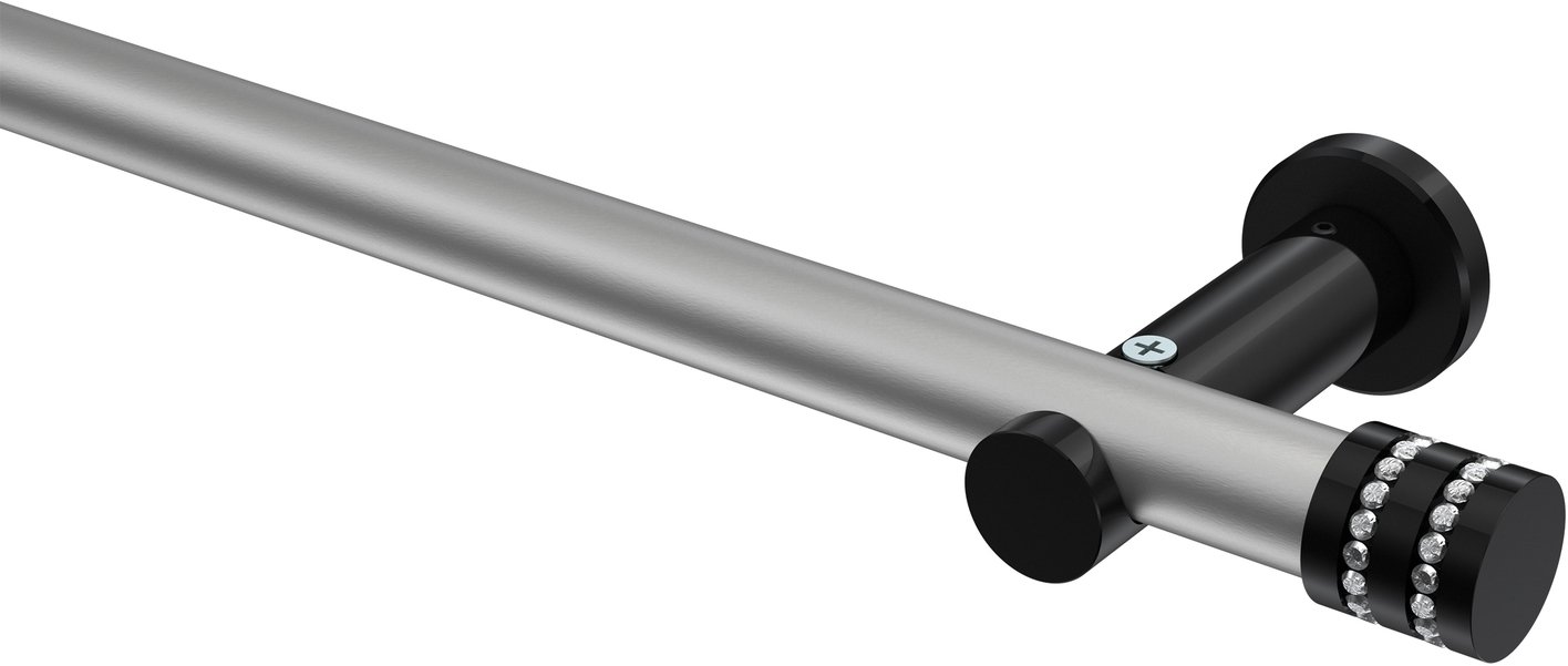Gardinenstangen aus Metall in 20 mm Ø, 1-läufig, Modell PLATON - Estana Silbergrau / Schwarz (ohne Ringe)