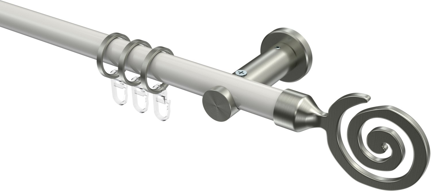 Gardinenstangen aus Metall in 20 mm Ø, 1-läufig, Modell PLATON - Galaxa Weiß / Edelstahl-Optik