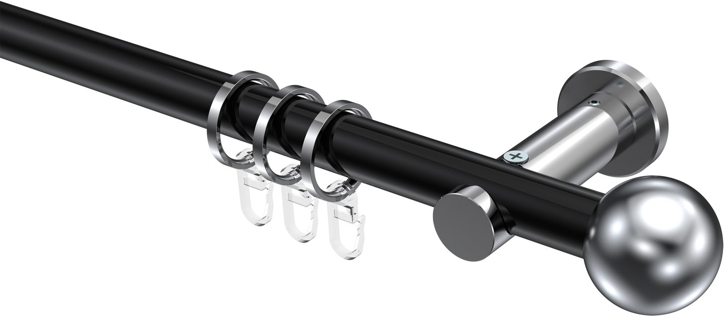 Gardinenstangen aus Metall in 20 mm Ø, 1-läufig, Modell PLATON - Luino Schwarz / Chrom