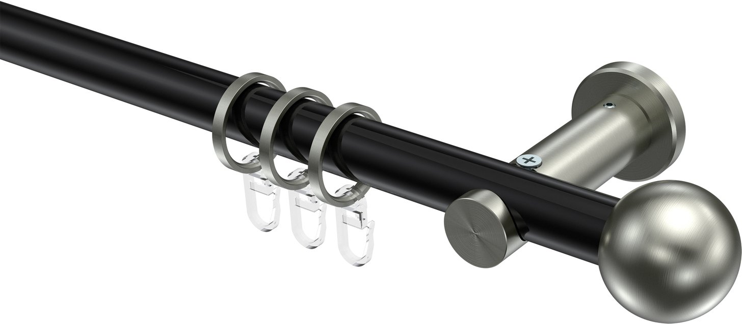 Gardinenstangen aus Metall in 20 mm Ø, 1-läufig, Modell PLATON - Luino Schwarz / Edelstahl-Optik