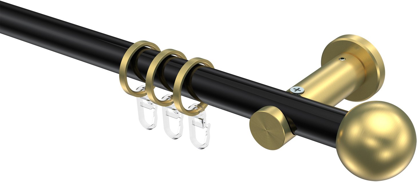 Gardinenstangen aus Metall in 20 mm Ø, 1-läufig, Modell PLATON - Luino Schwarz / Messing-Optik