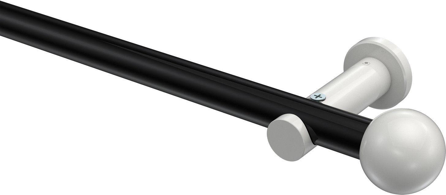 Gardinenstangen aus Metall in 20 mm Ø, 1-läufig, Modell PLATON - Luino Schwarz / Weiß (ohne Ringe)