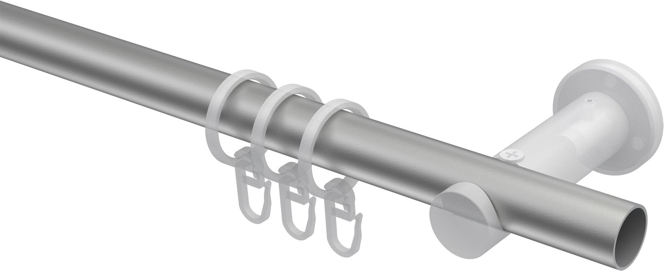 Gardinenstangen aus Metall in 20 mm Ø, 1-läufig, Modell PLATON - Luino Silbergrau / Schwarz