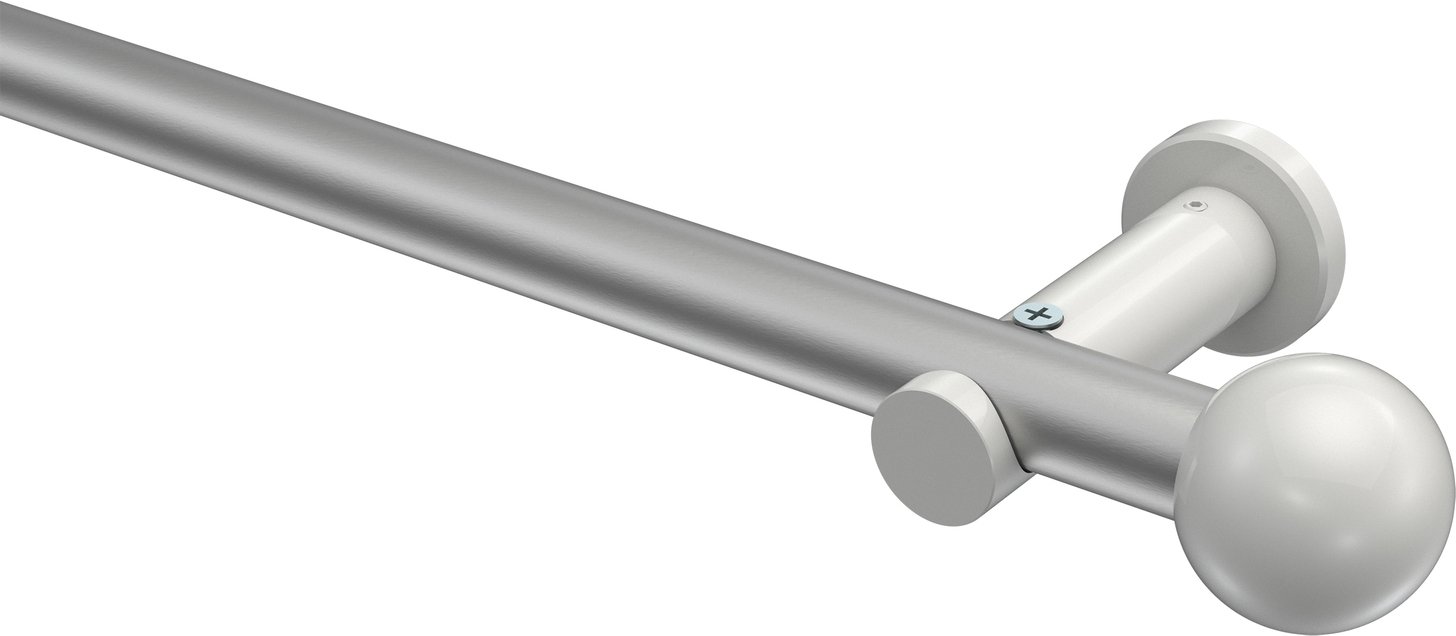 Gardinenstangen aus Metall in 20 mm Ø, 1-läufig, Modell PLATON - Luino Silbergrau / Weiß (ohne Ringe)