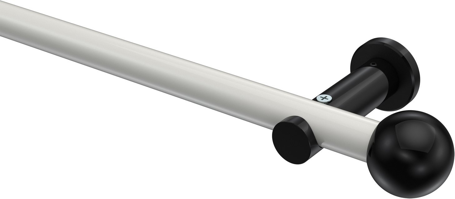Gardinenstangen aus Metall in 20 mm Ø, 1-läufig, Modell PLATON - Luino Weiß / Schwarz (ohne Ringe)
