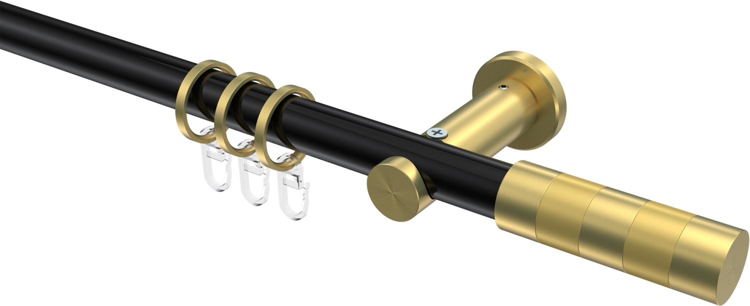 Gardinenstangen aus Metall in 20 mm Ø, 1-läufig, Modell PLATON - Mavell Schwarz / Messing-Optik
