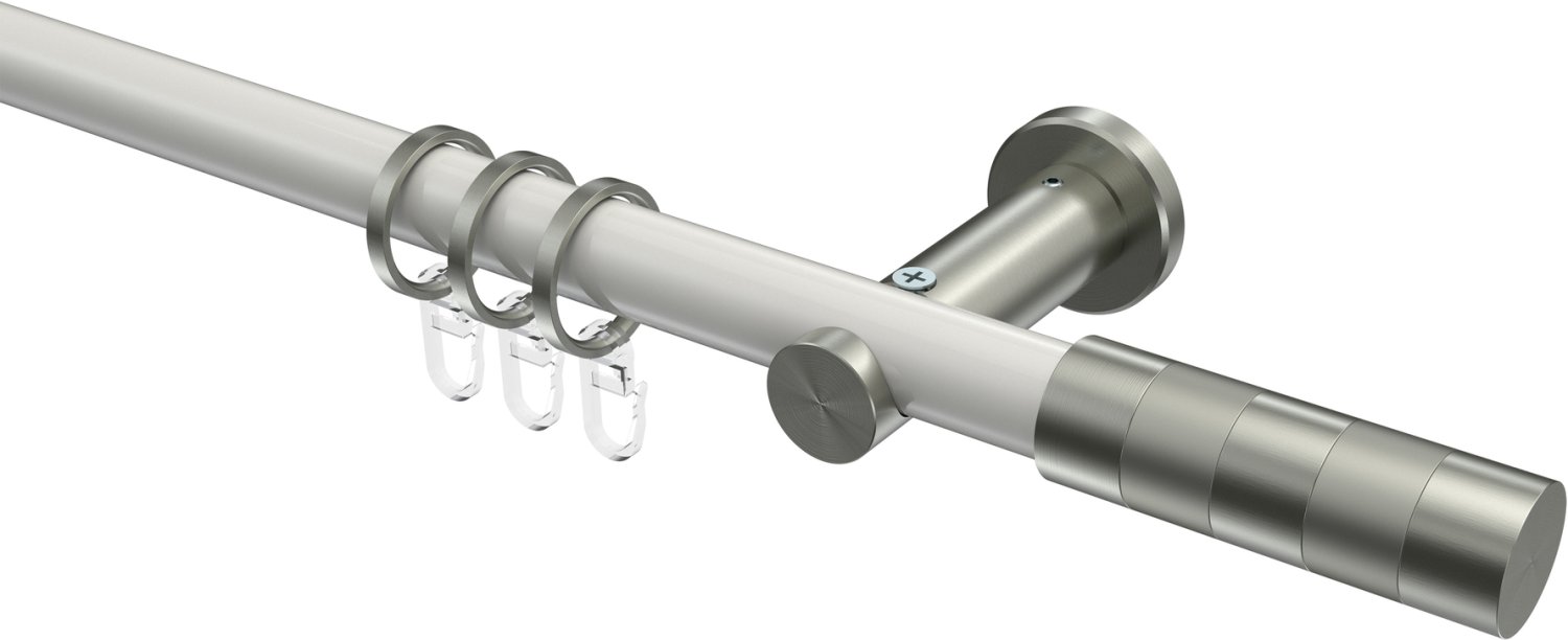 Gardinenstangen aus Metall in 20 mm Ø, 1-läufig, Modell PLATON - Mavell Weiß / Edelstahl-Optik