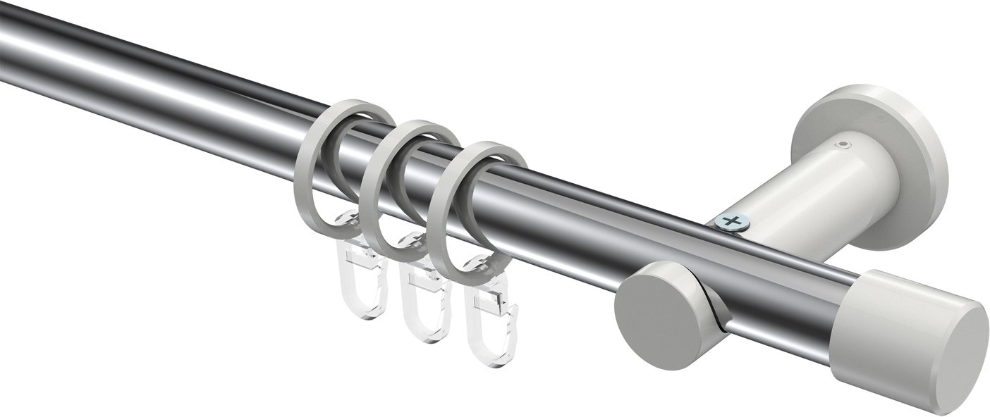 Gardinenstangen aus Metall in 20 mm Ø, 1-läufig, Modell PLATON - Santo Chrom / Weiß