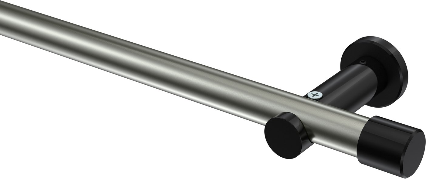 Gardinenstangen aus Metall in 20 mm Ø, 1-läufig, Modell PLATON - Santo Edelstahl-Optik / Schwarz (ohne Ringe)