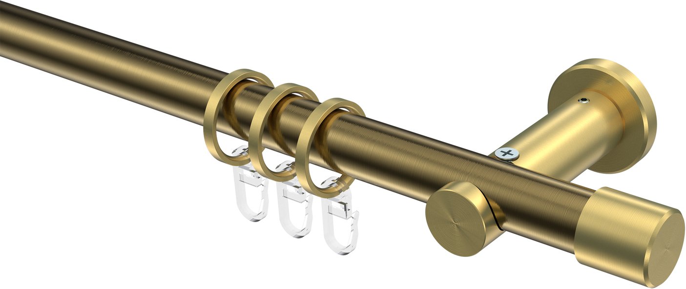 Gardinenstangen aus Metall in 20 mm Ø, 1-läufig, Modell PLATON - Santo Messing Antik / Messing-Optik