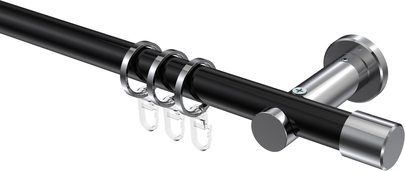 Gardinenstangen aus Metall in 20 mm Ø, 1-läufig, Modell PLATON - Santo Schwarz / Chrom