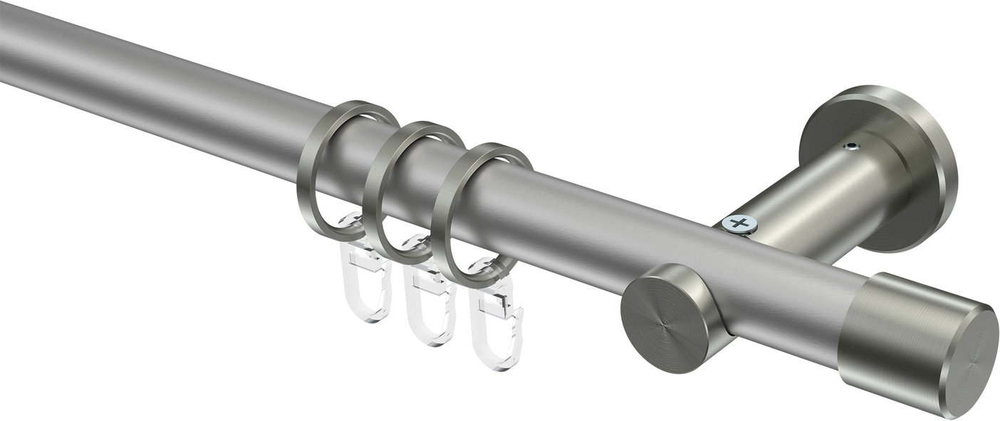 Gardinenstangen aus Metall in 20 mm Ø, 1-läufig, Modell PLATON - Santo Silbergrau / Edelstahl-Optik