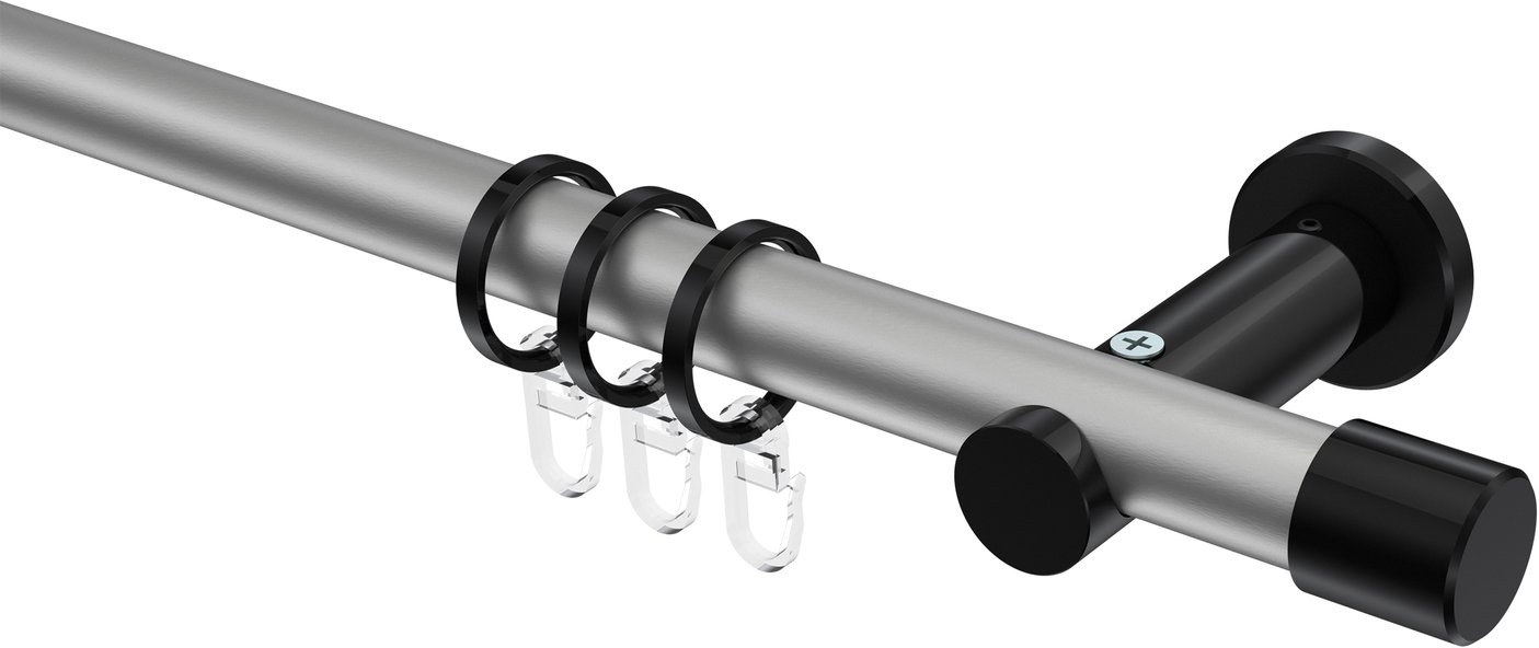 Gardinenstangen aus Metall in 20 mm Ø, 1-läufig, Modell PLATON - Santo Silbergrau / Schwarz