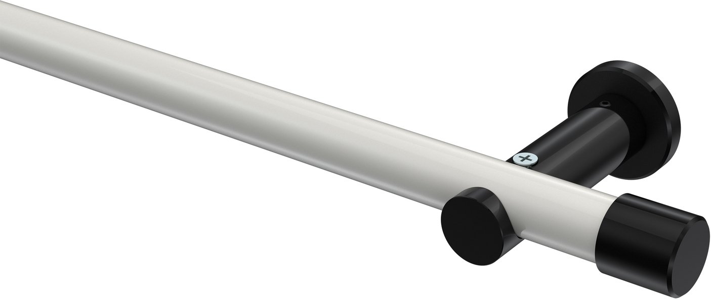 Gardinenstangen aus Metall in 20 mm Ø, 1-läufig, Modell PLATON - Santo Weiß / Schwarz (ohne Ringe)