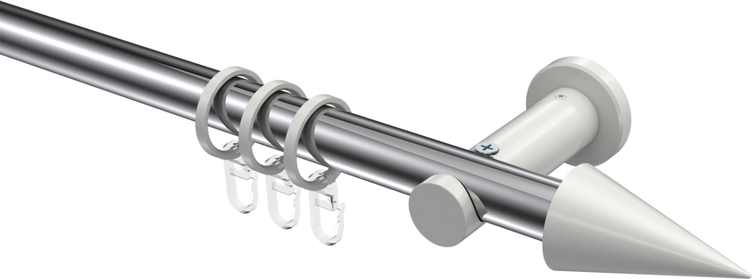 Gardinenstangen aus Metall in 20 mm Ø, 1-läufig, Modell PLATON - Savio Chrom / Weiß