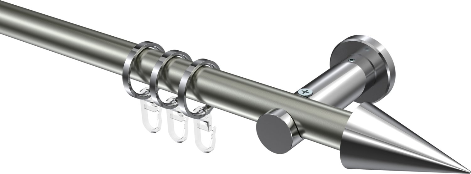 Gardinenstangen aus Metall in 20 mm Ø, 1-läufig, Modell PLATON - Savio Edelstahl-Optik / Chrom