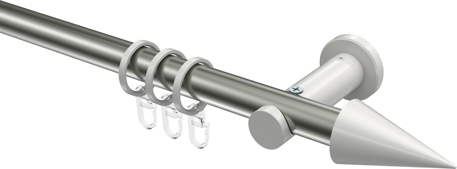 Gardinenstangen aus Metall in 20 mm Ø, 1-läufig, Modell PLATON - Savio Edelstahl-Optik / Weiß