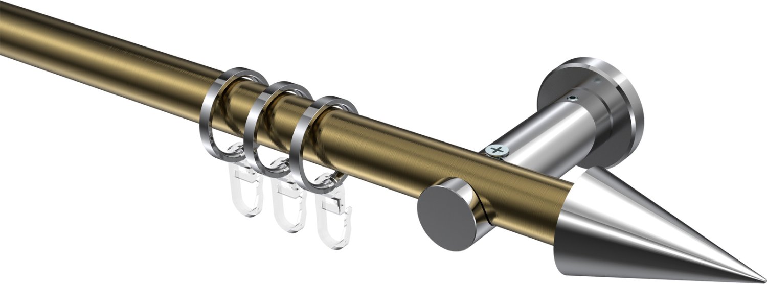 Gardinenstangen aus Metall in 20 mm Ø, 1-läufig, Modell PLATON - Savio Messing Antik / Chrom
