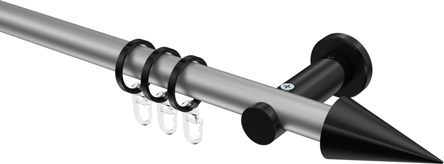 Gardinenstangen aus Metall in 20 mm Ø, 1-läufig, Modell PLATON - Savio Silbergrau / Schwarz