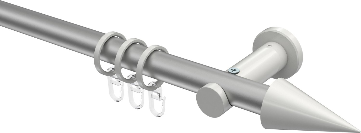 Gardinenstangen aus Metall in 20 mm Ø, 1-läufig, Modell PLATON - Savio Silbergrau / Weiß