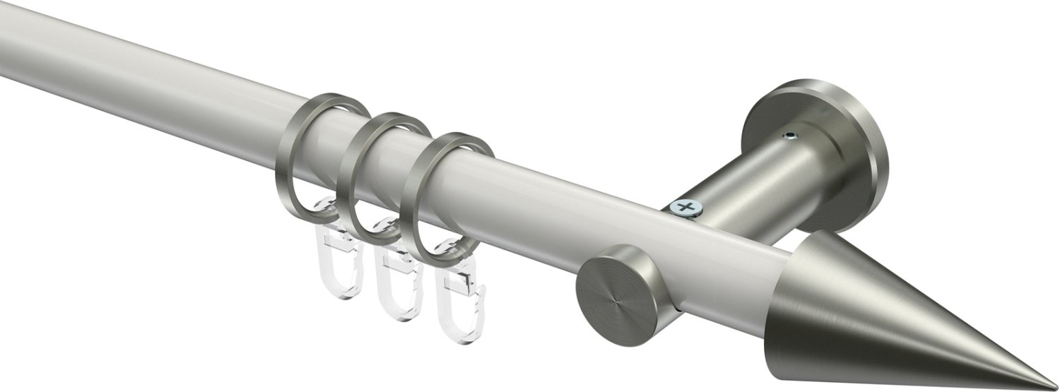 Gardinenstangen aus Metall in 20 mm Ø, 1-läufig, Modell PLATON - Savio Weiß / Edelstahl-Optik