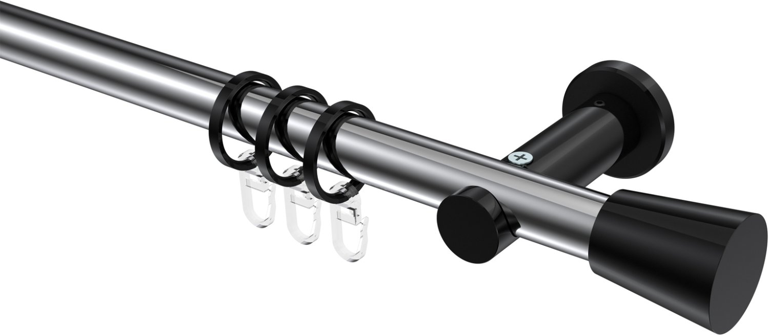 Gardinenstangen aus Metall in 20 mm Ø, 1-läufig, Modell PLATON - Sitra Chrom / Schwarz