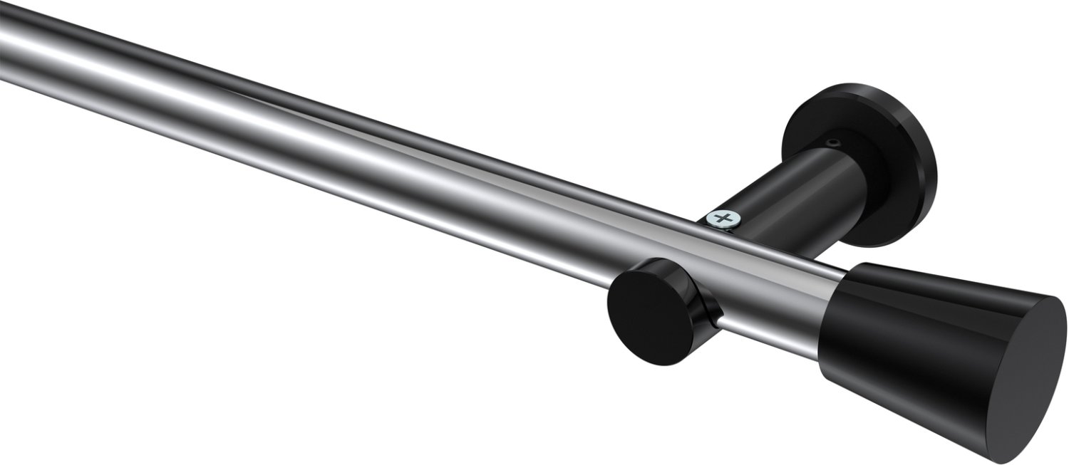 Gardinenstangen aus Metall in 20 mm Ø, 1-läufig, Modell PLATON - Sitra Chrom / Schwarz (ohne Ringe)