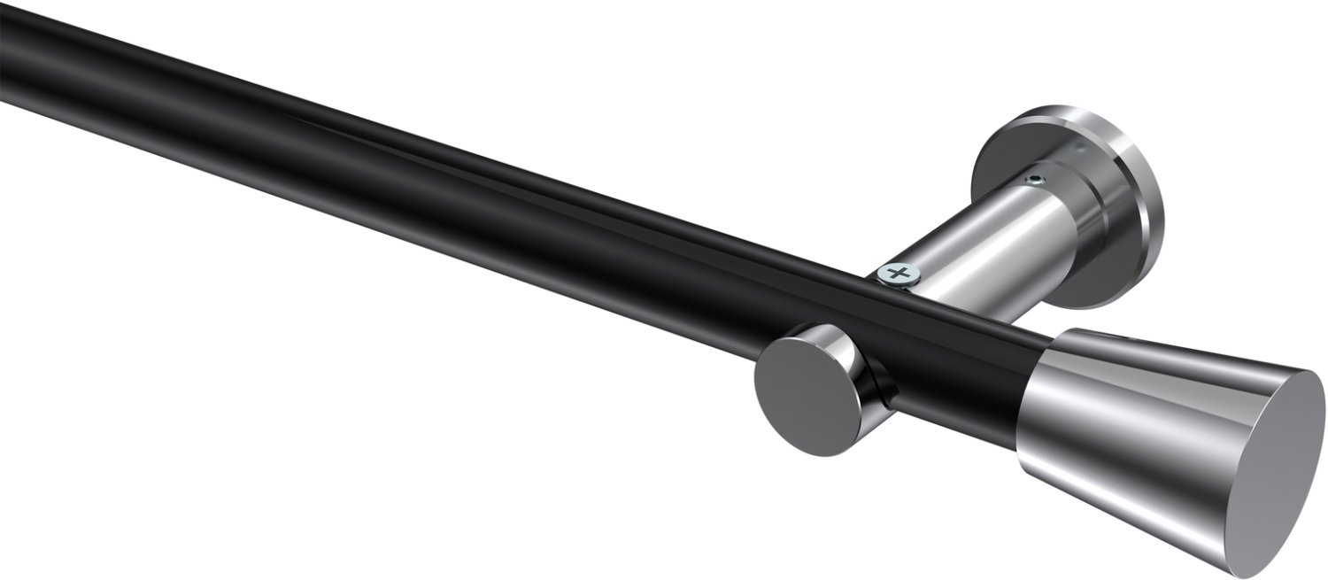 Gardinenstangen aus Metall in 20 mm Ø, 1-läufig, Modell PLATON - Sitra Schwarz / Chrom (ohne Ringe)